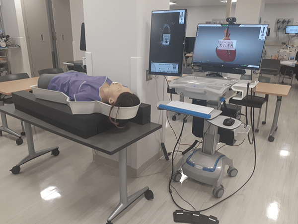 Four patient bays are connected to a central control center with observation work stations for high-stakes practice and testing allowing for a multiple patient encounter.